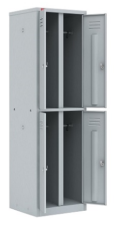 Четырехсекционный разборный гардеробный шкаф модели ШРМ-24 используются для хранения верхней и сменной одежды. Шкаф имеет 4 отделения. Каждое отделение оснащено перекладиной под вешалки, двумя крючками и дверью. Двери шкафа крепятся на внутренние петли и имеют блоки вентиляционных отверстий Закрывается шкаф врезными ключевыми замками PaksLocks. ШРМ-24 окрашен порошковой полимерной краской светло-серого цвета (RAL 7035) Поставляется шкаф в разобранном виде