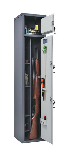 Сейф Беркут 150/2 (уцененный) предназначены для хранения огнестрельного оружия сейфы соответствуют требованиям ст.59 Постановления правительства РФ № 814 от 21 июля 1998 года О мерах по регулированию гражданского и служебного оружия и патронов к нему на территории РФ Изготовлен из металла толщиной 2 мм. Максимальная высота ствола 1220 мм. Вместимость сейфа 4 ствола. Сейф комплектуется блоком из 4 полок+1 полка в патронном отделении, ложементами. Размер патронного отделения (ВхШхГ), мм 230х296х254 Закрывается ключевым замком Цвет: графит структурированный. Тип покрытия порошковое.