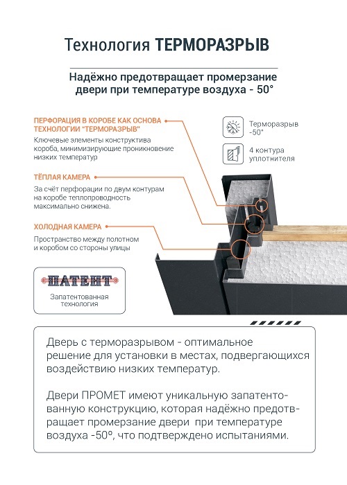 Дверь ВИНТЕР ПАНОРАМА это надежная входная металлическая дверь с ТЕРМОРАЗРЫВОМ и тройным стеклопакетом. Изготовлена из холоднокатаной легированной стали с порошково-полимерным покрытием. Данная конструкция надежно предотвращает промерзание двери при температуре окружающей среды до минус 50 С.