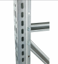 Конструкция рамы разборная. Собирается из двух вертикальных стоек, соединенных между собой комплектом горизонтальных связей. Стойки рамы изготовлены из оцинкованного металлического профиля 56х47 мм. Шаг перфорации 50 мм. Крепление балок к стойкам - безболтовое. Балки устанавливаются на стойки на зацепах и закрепляются фиксаторами, предохраняющим балку от случайного подъема. Накладки для шин используются для скругления углов балки.