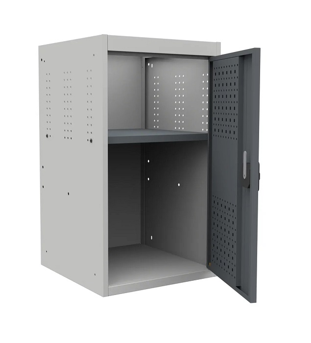 Выдерживает равномерно-распределенную нагрузку на верстак - 750 кг, на тумбу - 300 кг, на полку - 60 кг, на выдвижной ящик -30 кг, на перфорированный экран - 50 кг.