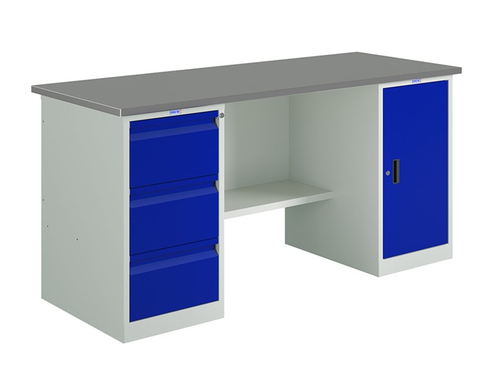 Цвет корпус - серый Ral 7038, ящики и двери тумб - синий Ral 5002