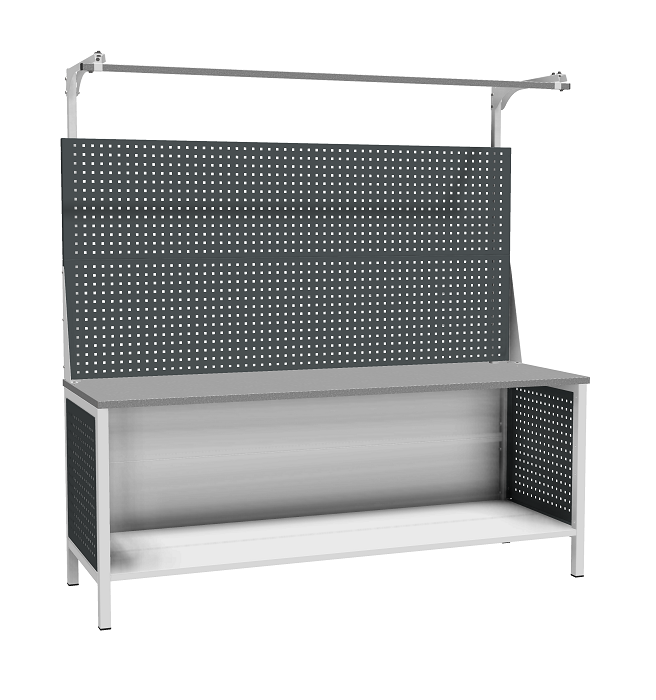 Цвет верстака: серый Ral 7038, панель облицовочная антрацит Ral 7016. Тип покрытия: эпоксидная порошковая краска. Поставляется в разобранном виде