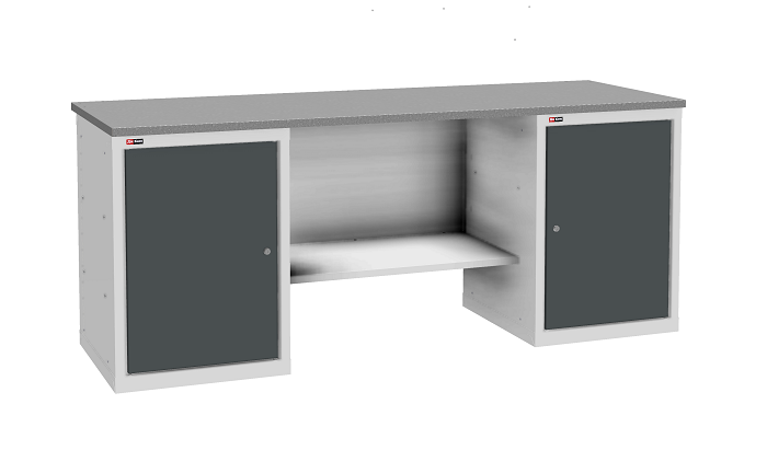 Цвет верстака: серый Ral 7038, лицевая панель ящиков/дверей антрацит Ral 7016. Тип покрытия: эпоксидная порошковая краска. Поставляется в разобранном виде