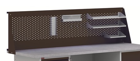 Перфорированный экран Э-1,4 черный предназначен для установки на верстаки длиной 1390 мм (ВП-2/1,4, ВП-3/1,4). Изготовлен из металла толщиной 1,2 мм. Экран имеет круглую перфорации диаметром 7 мм. В комплектацию экрана входят два кронштейна для крепления экрана к столешнице верстака. Дополнительно на экран можно установить второй экран Э-1,4В, удлиненную полку, укороченную полку, держатель инструментов, держатель ключей, крючки длиной 80 и 50 мм. Цвет: черный муар Ral 7021. Тип покрытия: порошковое.